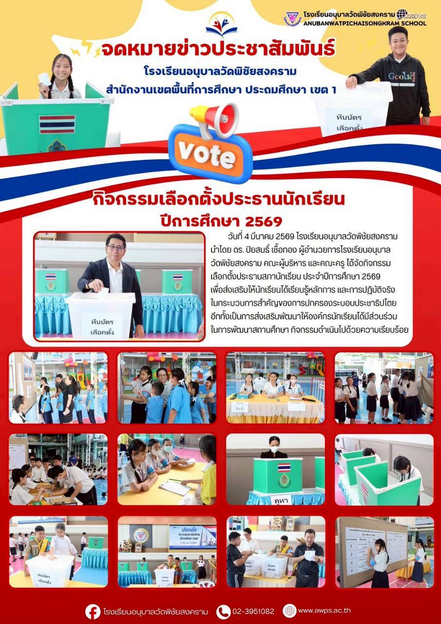 กิจกรรมเลือกตั้งประธานนักเรียน ปีการศึกษา 2569